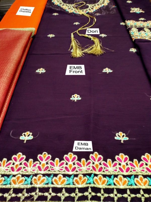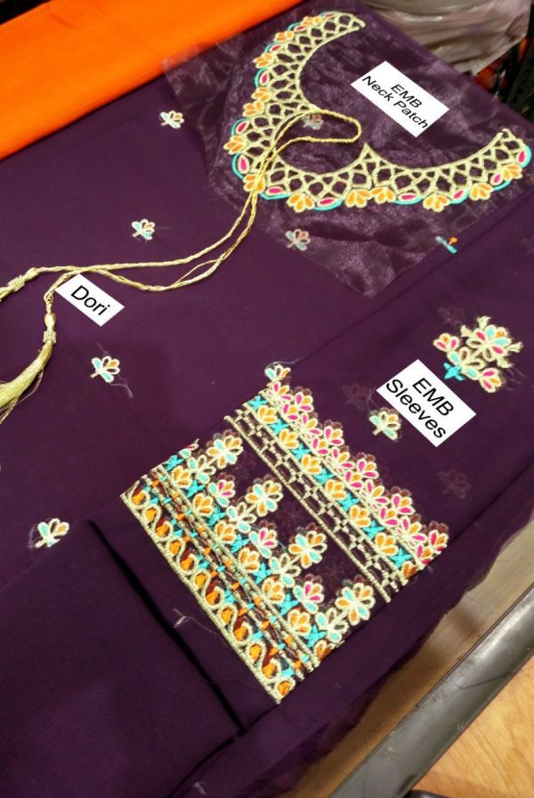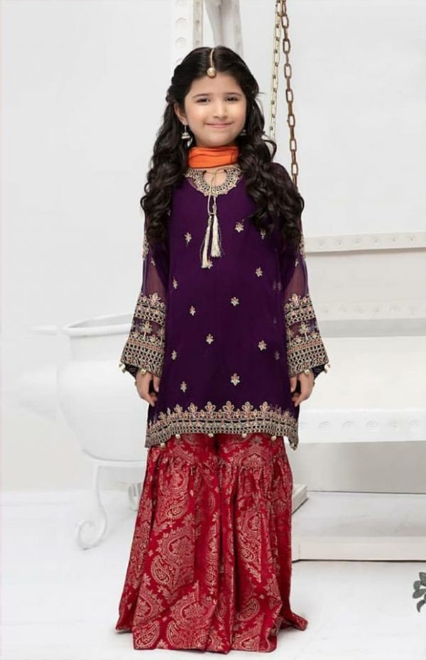 - Maria.b 3-Pcs Little Girl Unstitched Organza Luxury Dress JS-105 (Purple)