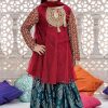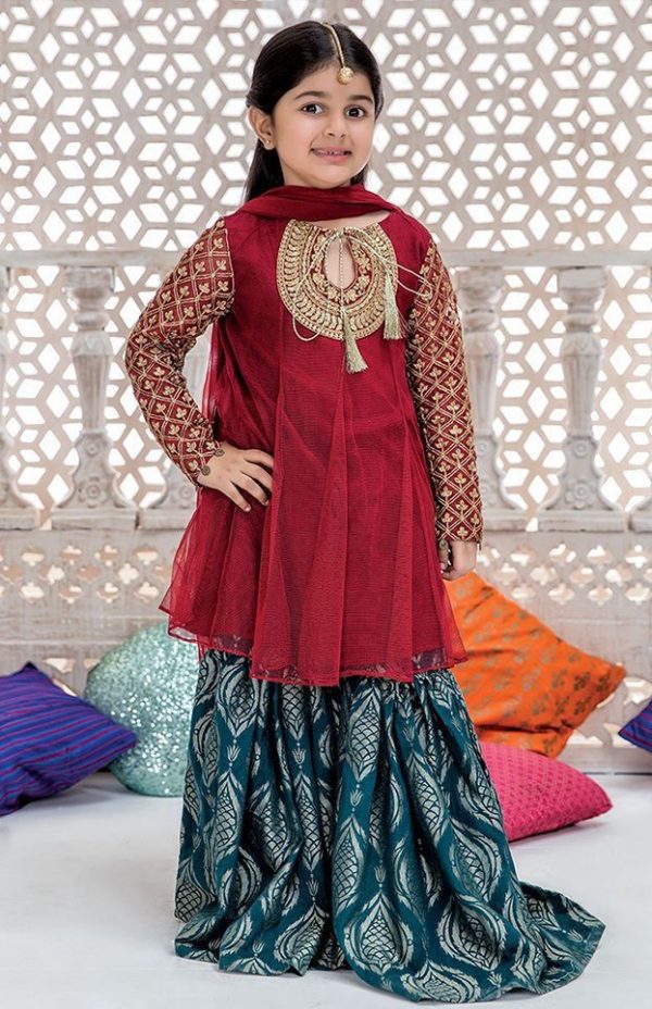 - Maria.b 3-Pcs Little Girl Unstitched Chiffon Dress JS-110 (Red)