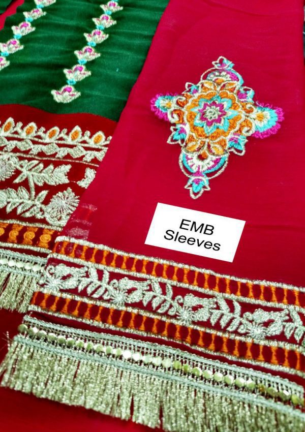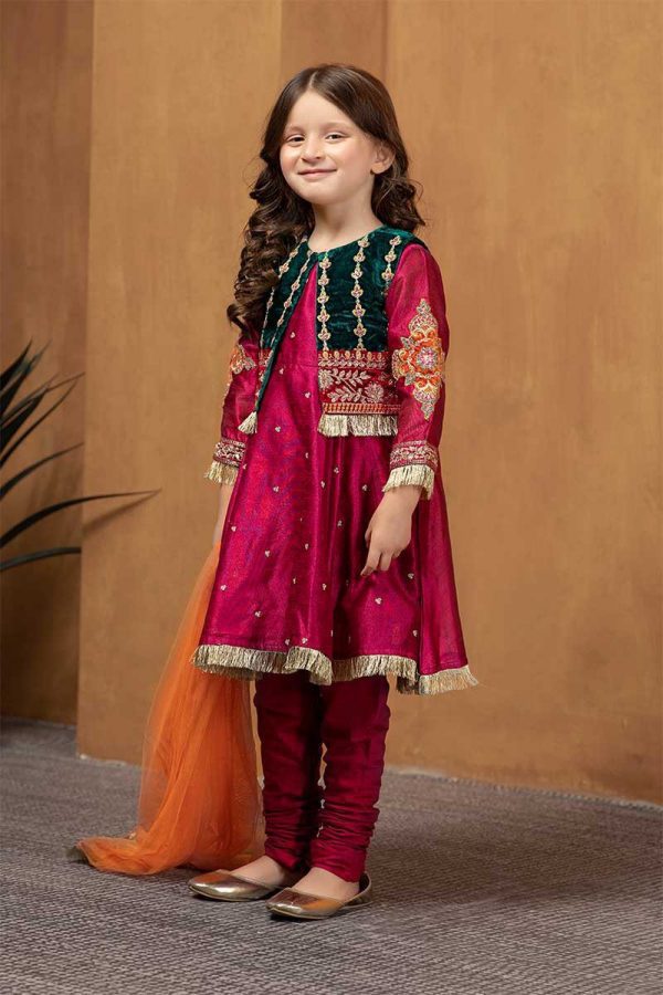 - Maria.b 3-Pcs Little Girl Unstitched Chiffon Dress JS-110 (Red)