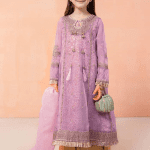 - Maria.b 3-Pcs Little Girl Unstitched Organza Luxury Dress JS-105 (Purple)