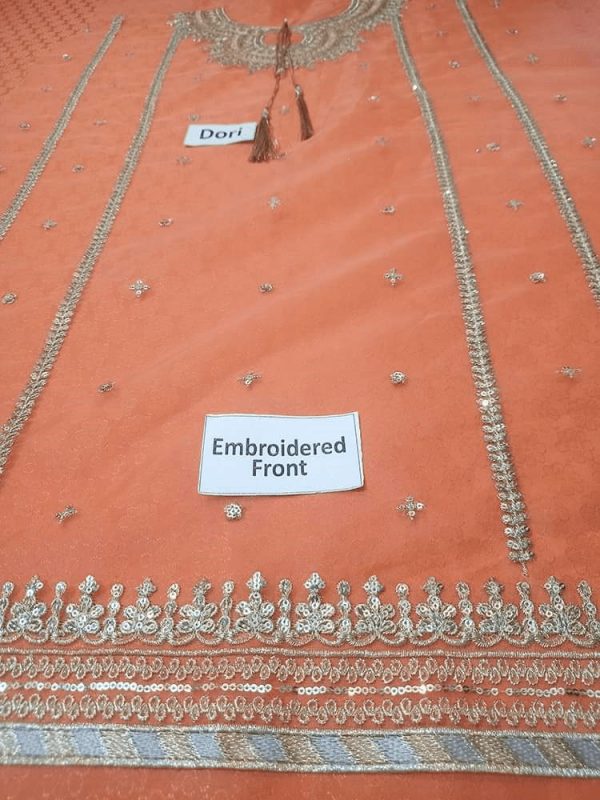 - Maria.b 3-Pcs Little Girl Unstitched Organza Luxury Dress JS-105 (Peach)