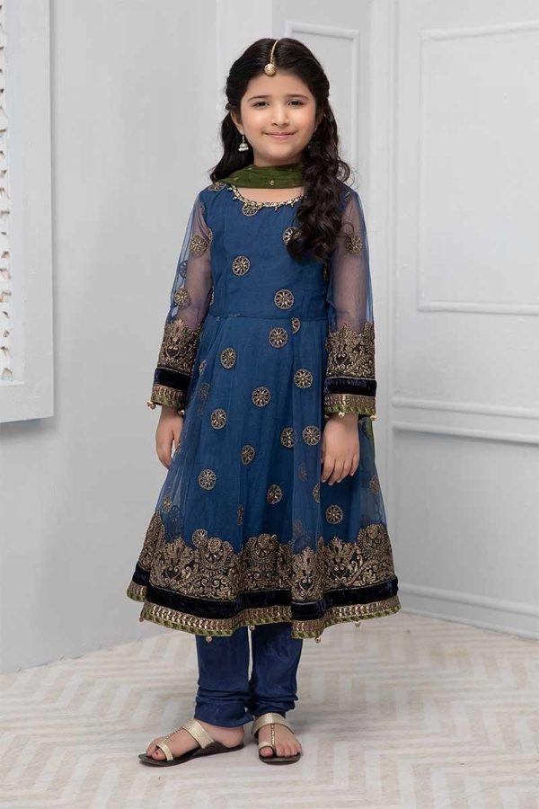 - Maria.b 3-Pcs Little Girl Unstitched Net Luxury Dress JS-106